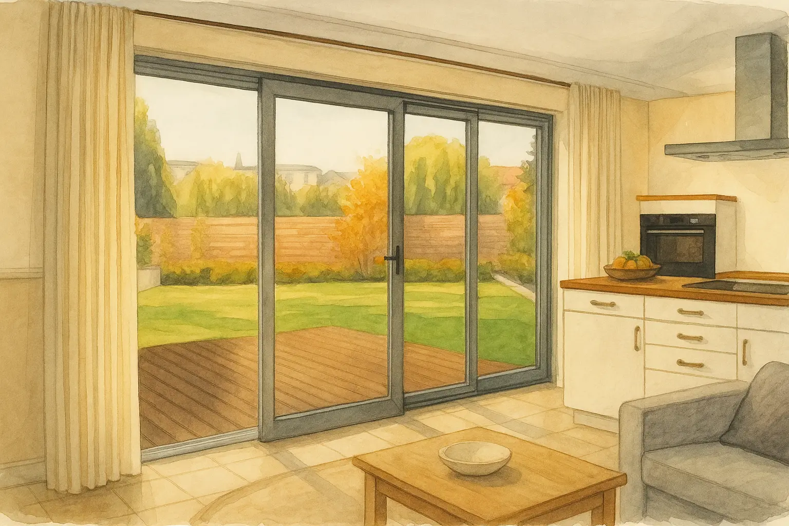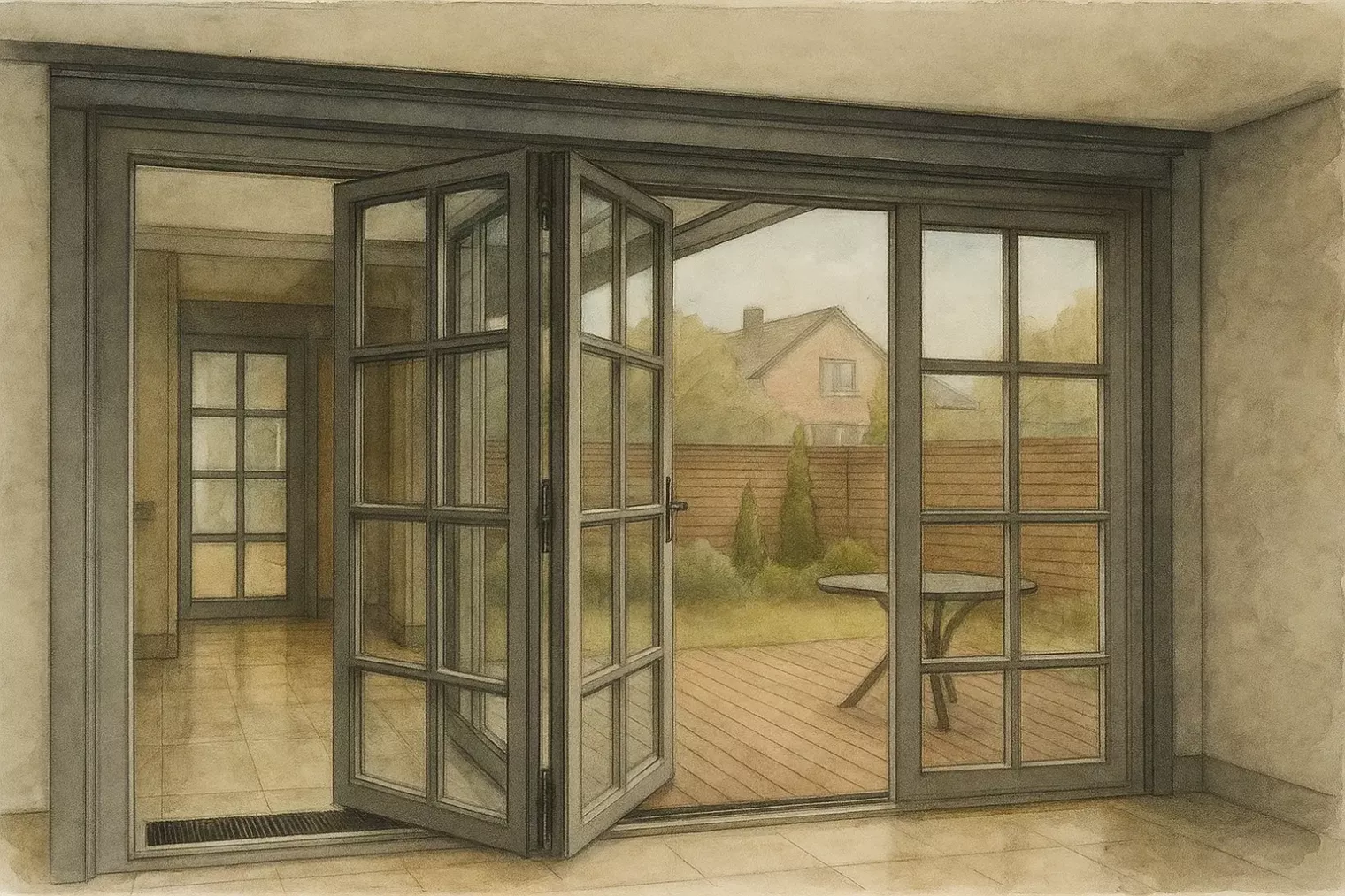 Благодаря особой фурнитуре створка движется плавно, фиксируется в нескольких положениях и обеспечивает герметичность при закрытии. Подобные решения можно встретить на балконах, террасах, лоджиях или в загородных домах, где важно сохранить свободное пространство и обеспечить комфортное открывание больших проёмов.