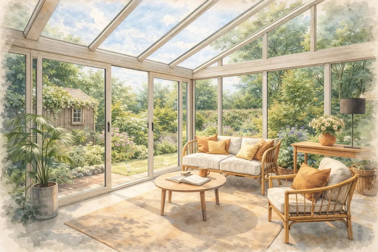 В закрытом положении такая система работает как одно большое окно: она защищает помещение от холода, ветра и шума, но не перекрывает обзор. При открывании створка сдвигается в сторону по направляющим, благодаря чему не нужно оставлять место для распахивания. Для выхода в сад или на террасу это особенно удобно: жильцы свободно перемещаются, не обходя распахнутые двери и не рискуя случайно задеть стекло.