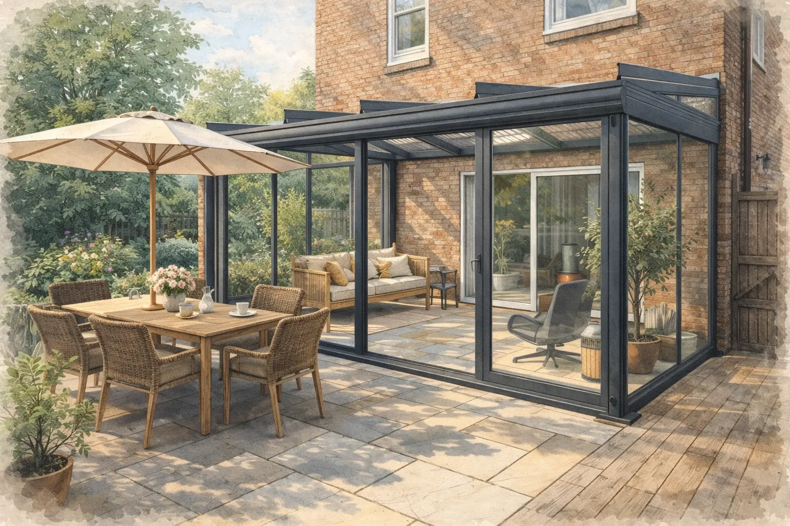 Конструкция основана на прочных алюминиевых профилях, которые удерживают крупные стеклопакеты и обеспечивают плавный ход створок. Фурнитура подбирается с запасом по нагрузке, чтобы подвижное полотно оставалось легким в управлении на протяжении всего срока службы. Уплотнители и замки формируют герметичный контур, поэтому по теплоизоляции такие решения сопоставимы с качественными стационарными окна.